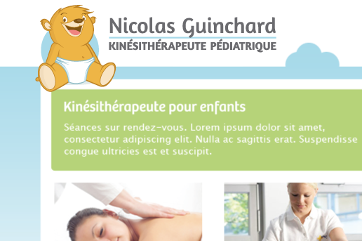 Création d’un logo pour Nicolas Guinchard, Kinésithérapeute pédiatrique. La principale difficulté était qu’il devait s’intégrer harmonieusement dans la charte graphique de son site web qui avait été réalisée en amont.